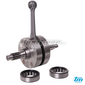 Crankshaft set (left/right halves) for TM KZ R3 engines. This original TM set includes both crankshaft halves, forming the complete crank assembly to ensure smooth and precise power transfer from piston to transmission.