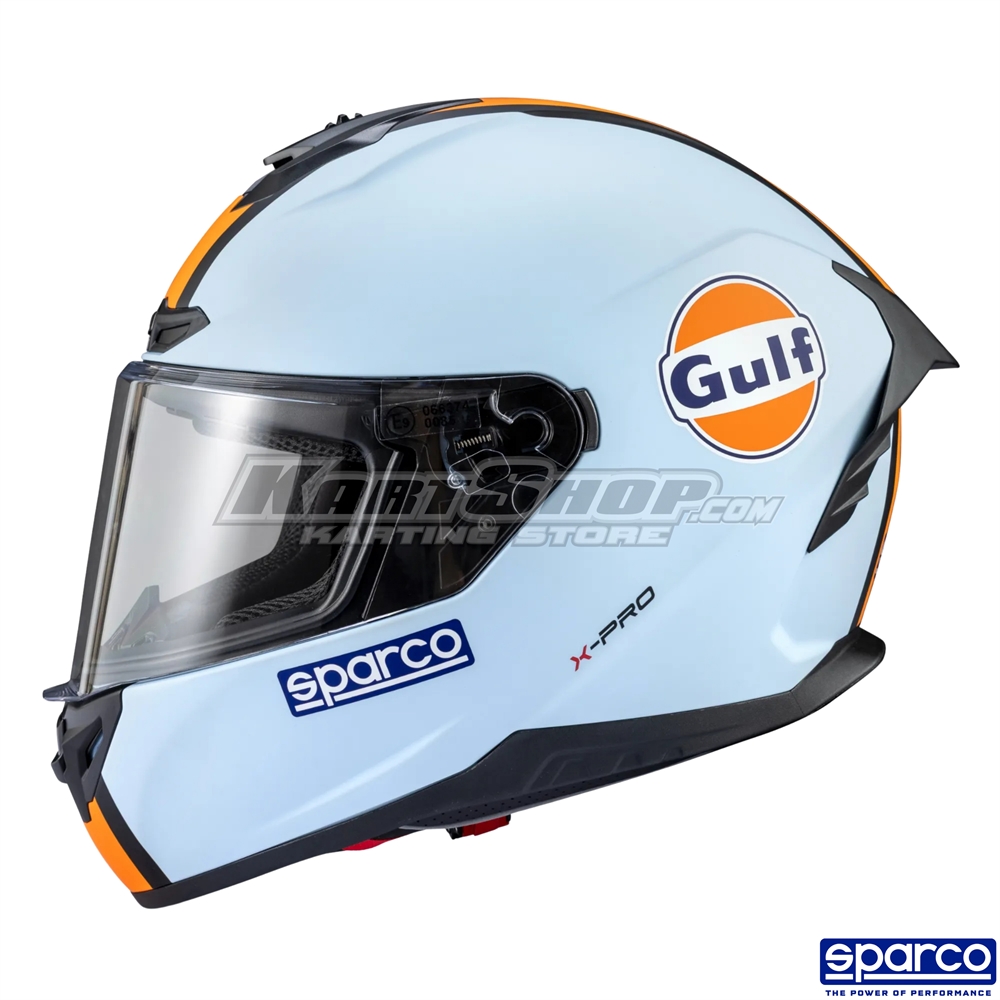 The Sparco Gulf X-Pro is a modern karting helmet that blends classic motorsport styling with contemporary safety and comfort. As part of Sparco’s official Gulf collection, the helmet offers a distinctive visual identity combined with reliable protection for kart drivers.