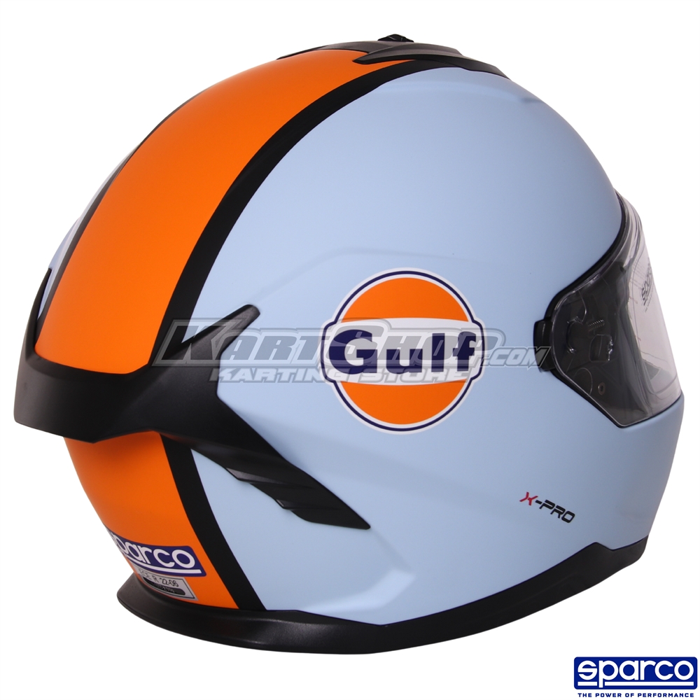 The Sparco Gulf X-Pro is a modern karting helmet that blends classic motorsport styling with contemporary safety and comfort. As part of Sparco’s official Gulf collection, the helmet offers a distinctive visual identity combined with reliable protection for kart drivers.