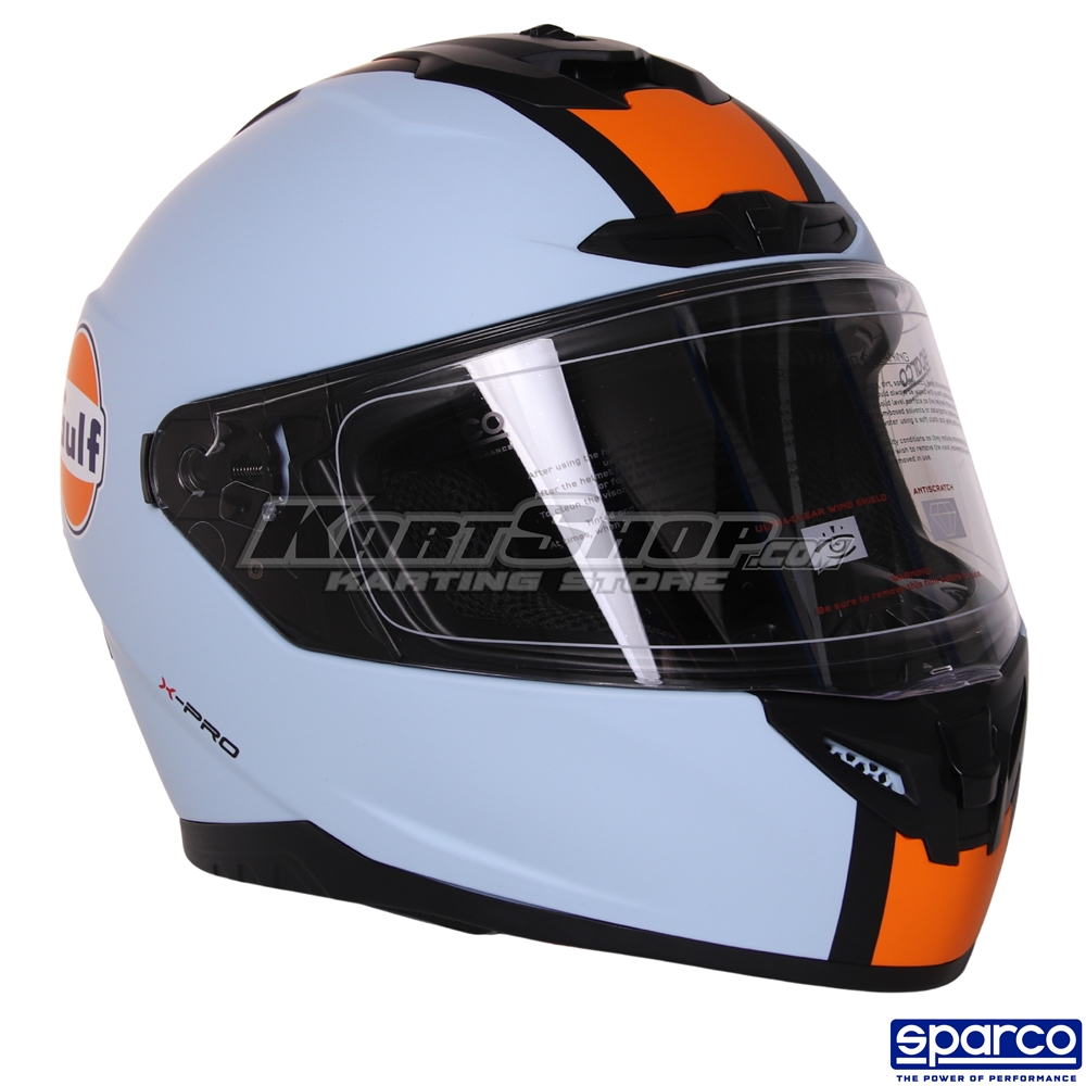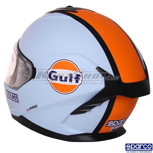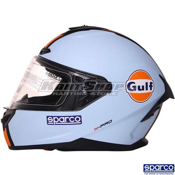 The Sparco Gulf X-Pro is a modern karting helmet that blends classic motorsport styling with contemporary safety and comfort. As part of Sparco’s official Gulf collection, the helmet offers a distinctive visual identity combined with reliable protection for kart drivers.